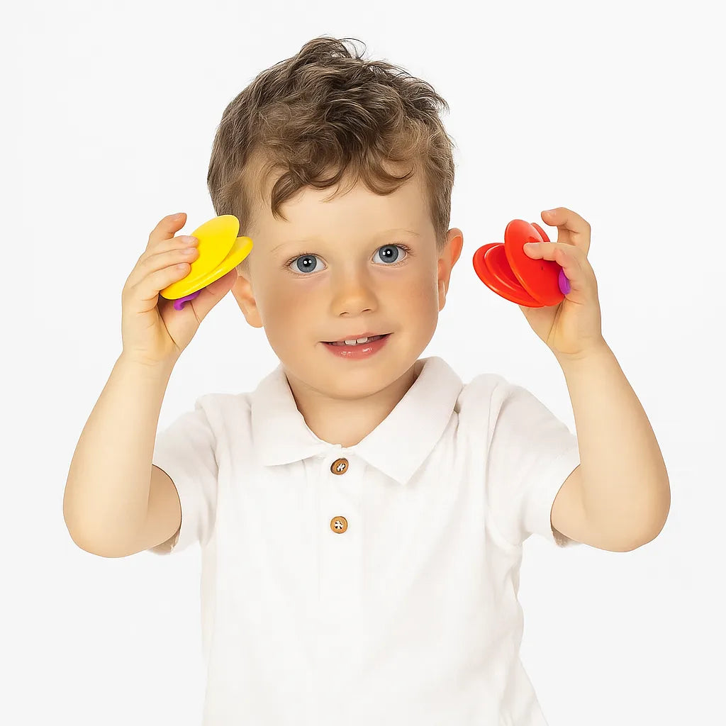 These castanets offer more than musical enjoyment—they provide valuable sensory and developmental benefits. Children learn to create rhythm through tapping and clapping motions, which support their early listening and timing skills. Their fine motor abilities strengthen as they grip, squeeze, and coordinate movements, helping prepare them for everyday tasks and future learning milestones. The simple, joyful sound created by these percussion instruments helps build confidence, self-expression, and curiosity about rhythm and movement.
