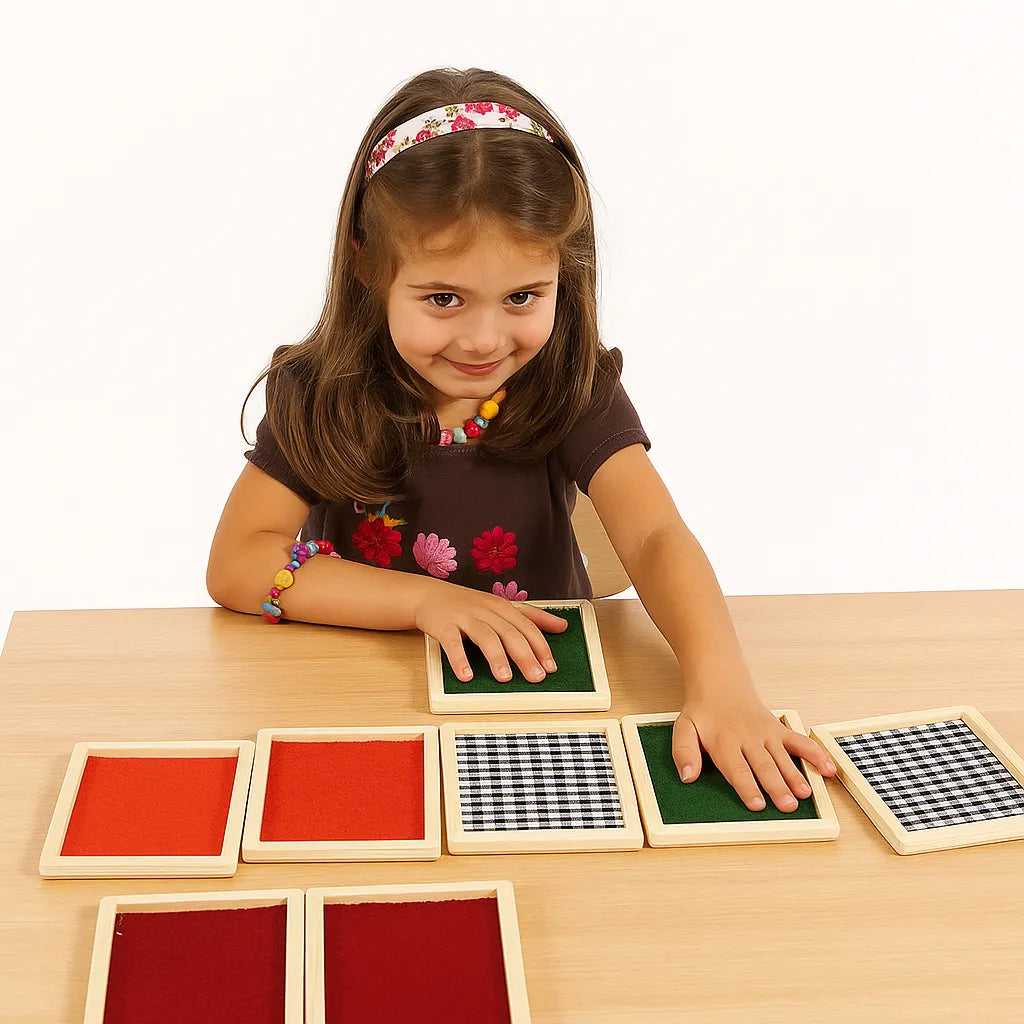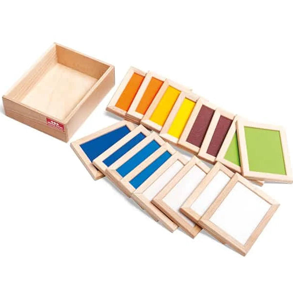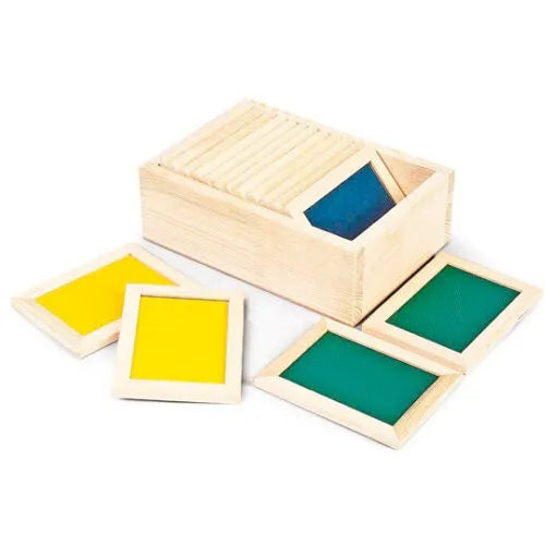 Nestled in a durably crafted wooden box, each texture is framed in quality wood to ensure safe and long-lasting play. The set embodies a rich aesthetic and a rustic charm, promoting not just learning but a heartfelt appreciation for natural materials.