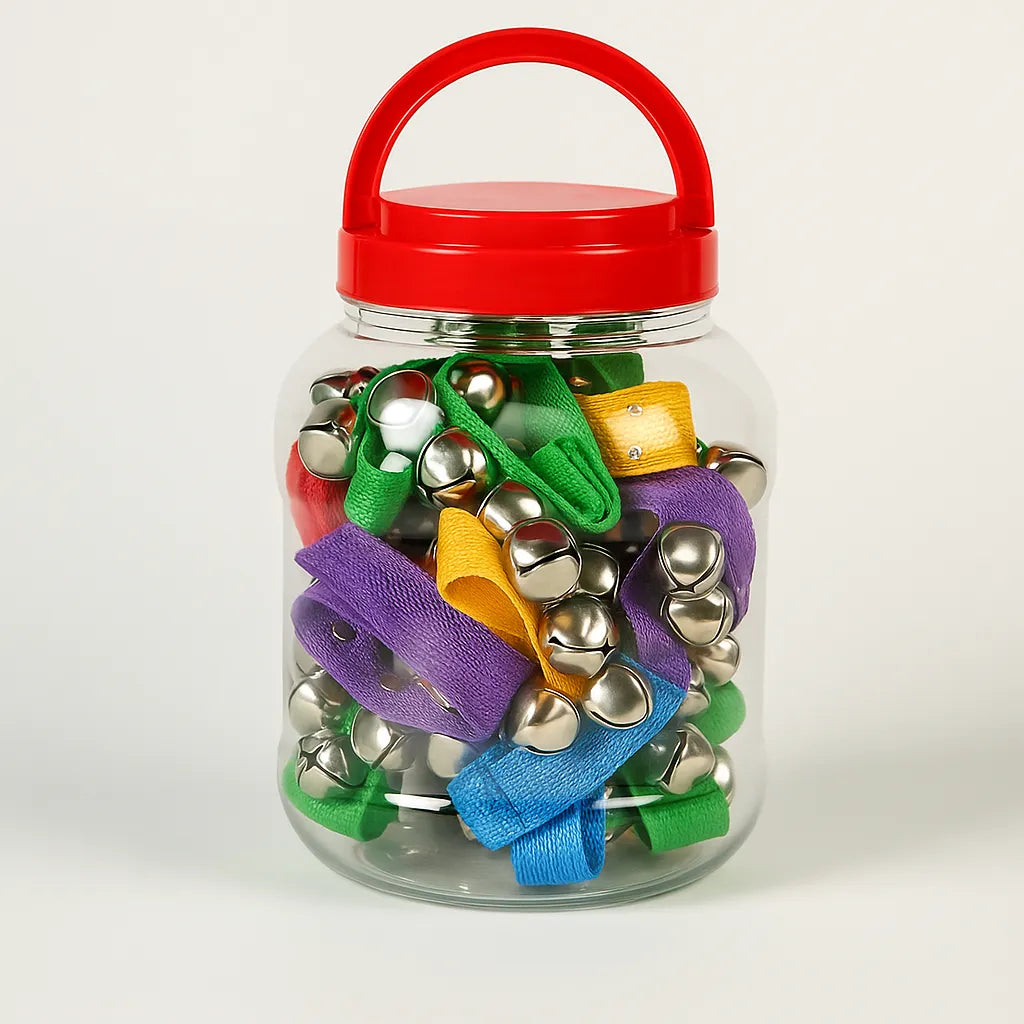 Supplied in a convenient plastic jar with a handle, the set is easy to store and transport, making it ideal for classrooms, group activities, or even festive events. The wrist bells can be used in a variety of creative ways, from storytelling to group performances, fostering teamwork and imagination.
