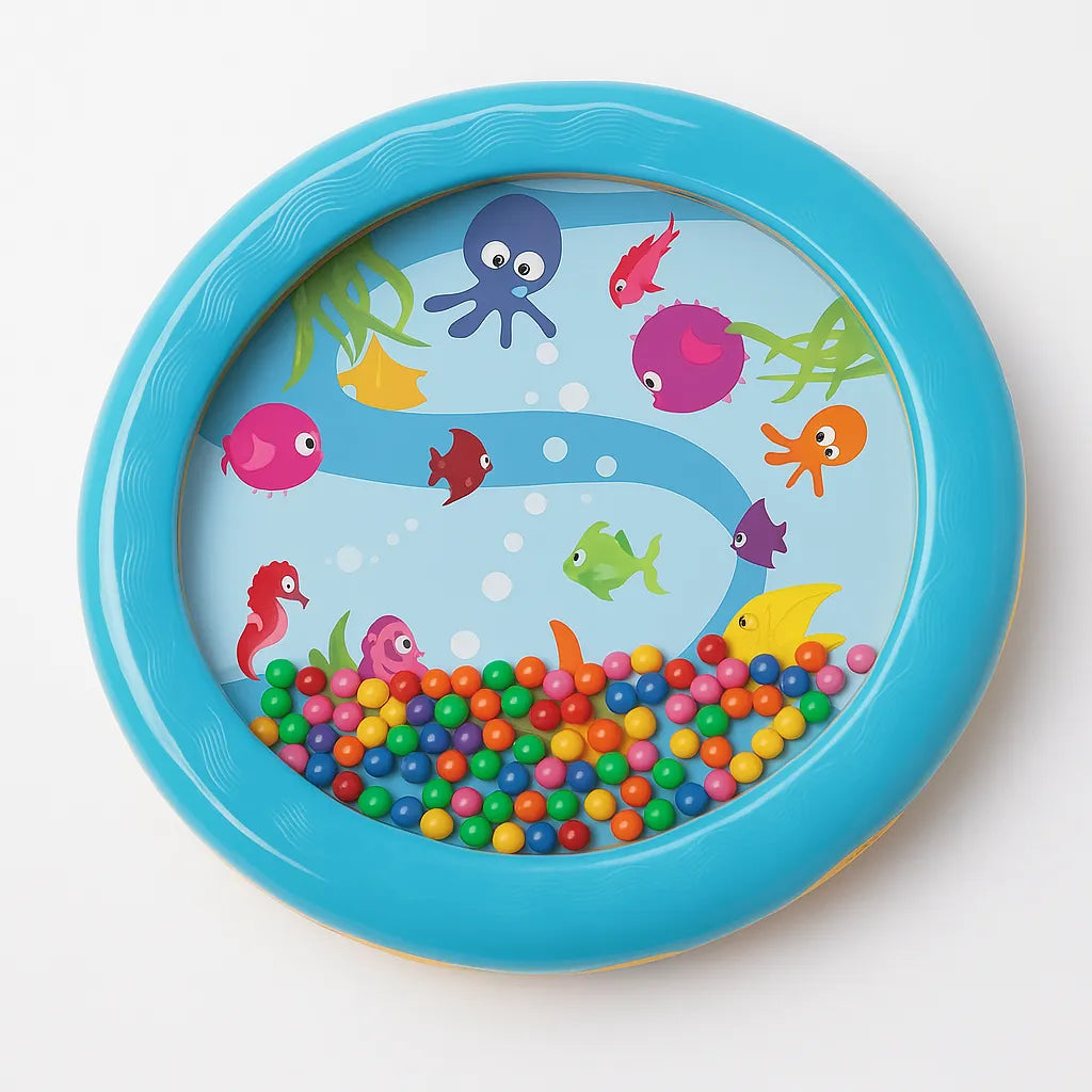• Ocean Drum: A sea-themed drum featuring beautifully illustrated underwater designs. Inside, cascading beads create the gentle sound of rolling waves, offering both visual beauty and auditory calm. Children can shake or tilt the drum to explore different sounds and rhythms.