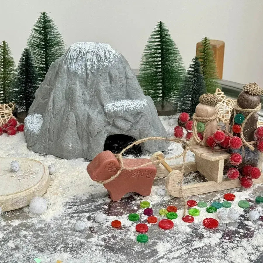 Take storytelling to new heights with Play Mountain, a realistic, tactile small-world play prop that inspires endless imaginative adventures. With its snowy summit, rocky slopes, cliffs, hidden cave and multiple ledges, this beautifully detailed mountain creates the perfect setting for exploration, discovery and creative play.