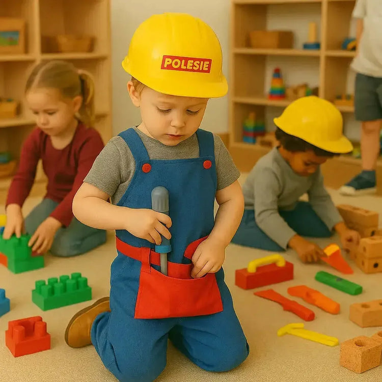 3-piece set: dungarees, tool belt, and child-sized safety helmet