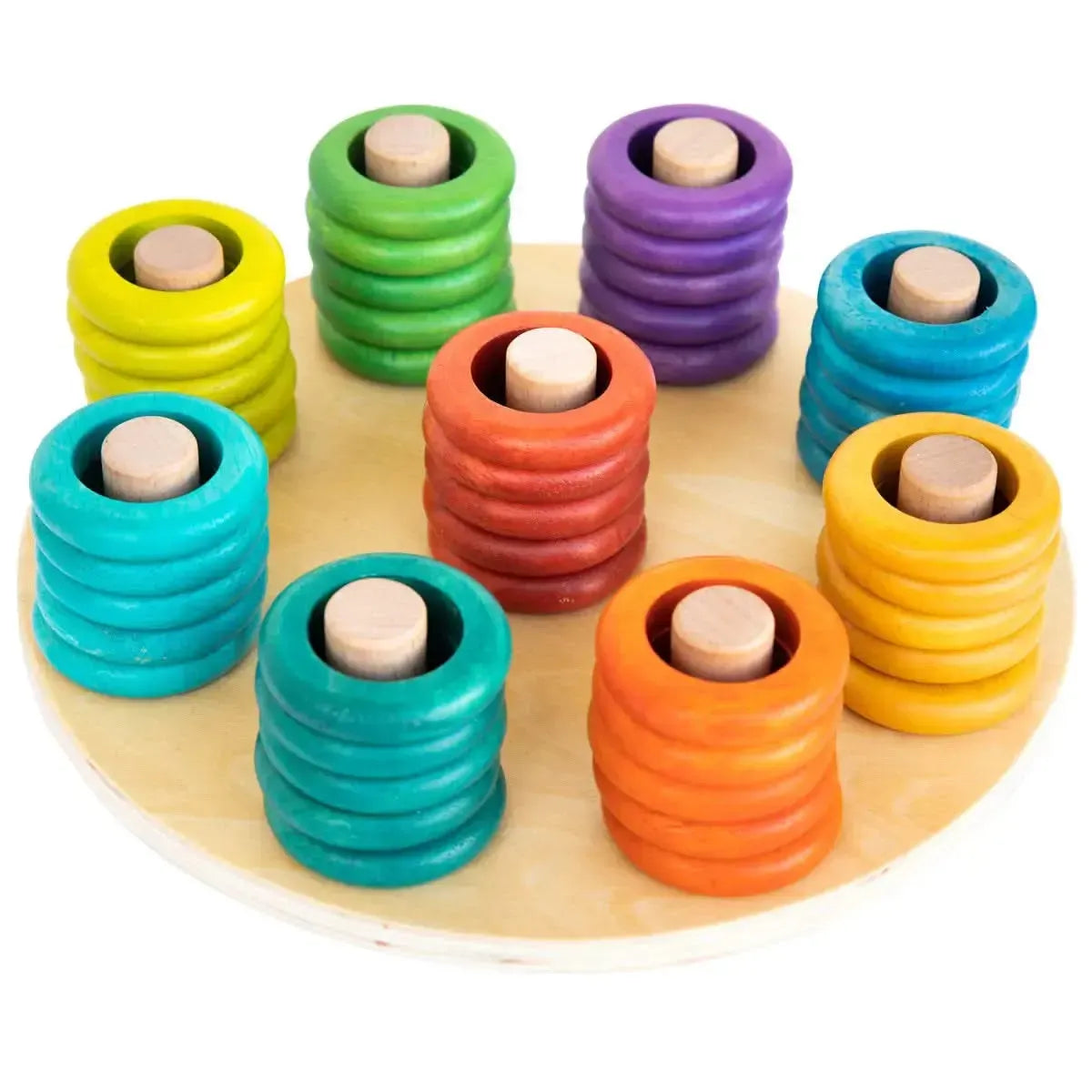 - This beautifully made open-ended wooden set features 9 bright and engaging coloured rings (5 in each colour).