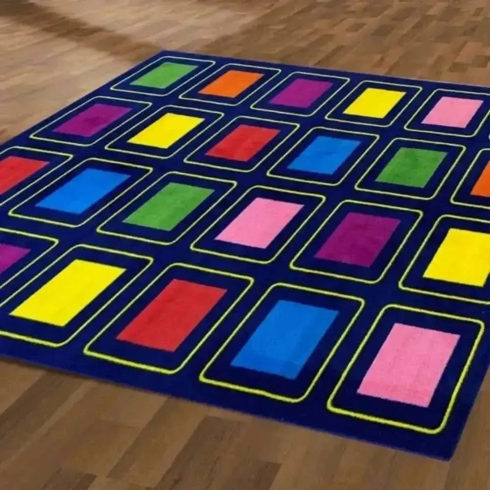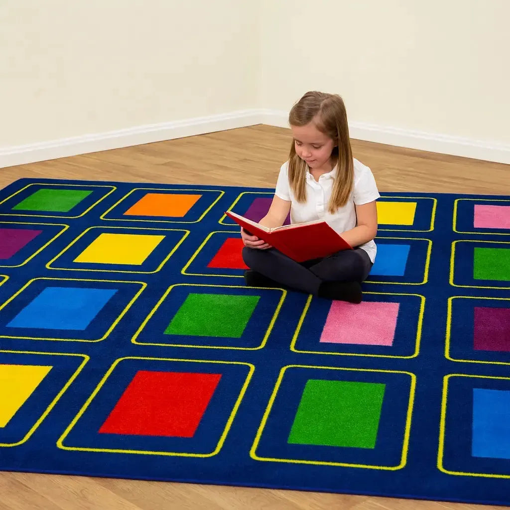 KinderColour™ Squares Placement Carpet – Comfortable and Durable Classroom Seating for 24 Children