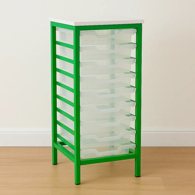 Whether you're after uniformity or prefer a splash of colour, you can mix and match tray colours to suit your setting. Each tray slot is compatible with the Monarch single tray system, and you can also opt for double, triple or quad tray sizes depending on your storage needs—each one taking up a proportional number of tray slots.