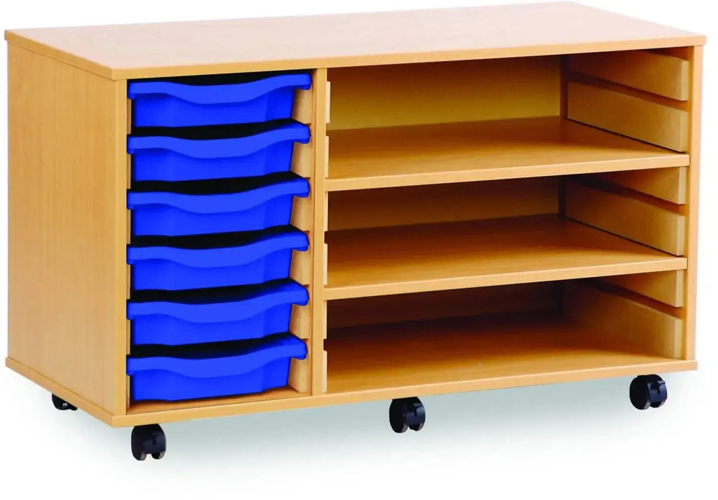 The Monarch 6 Shallow Tray Unit with 2 Adjustable Shelves is a versatile and practical storage solution designed for schools, colleges, and nurseries. Combining the benefits of tray and shelf storage, this unit is perfect for organising educational materials, stationery, and classroom supplies efficiently.