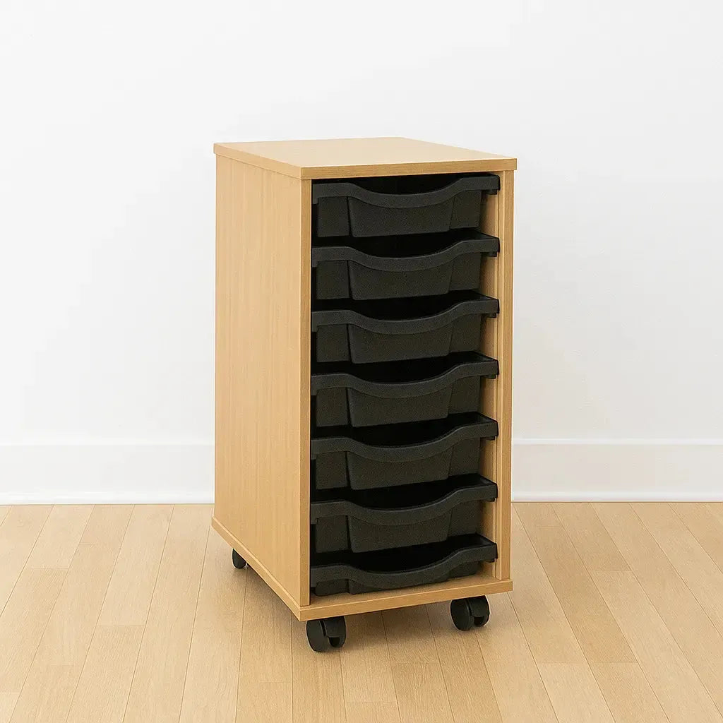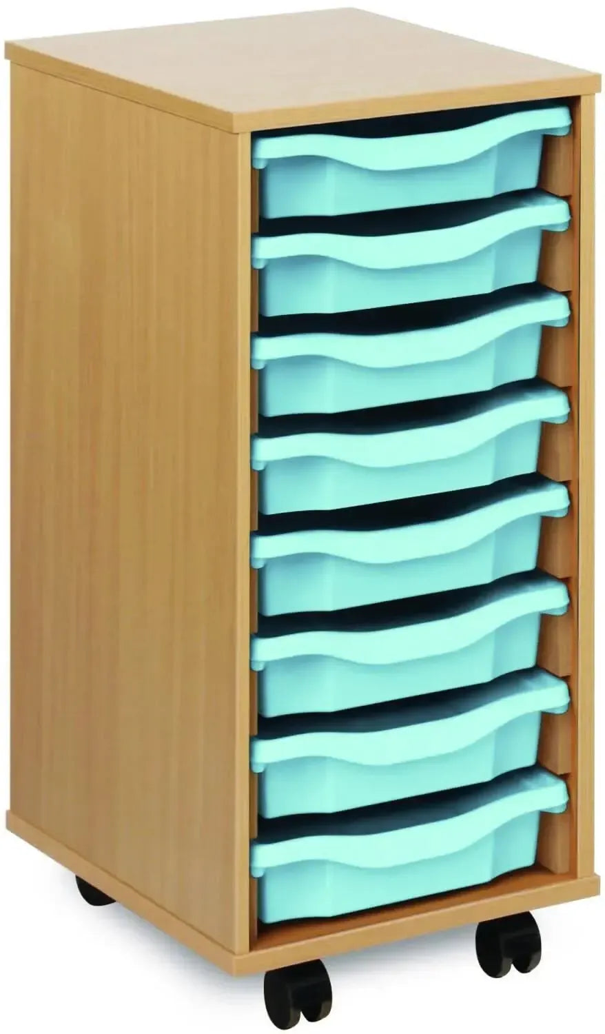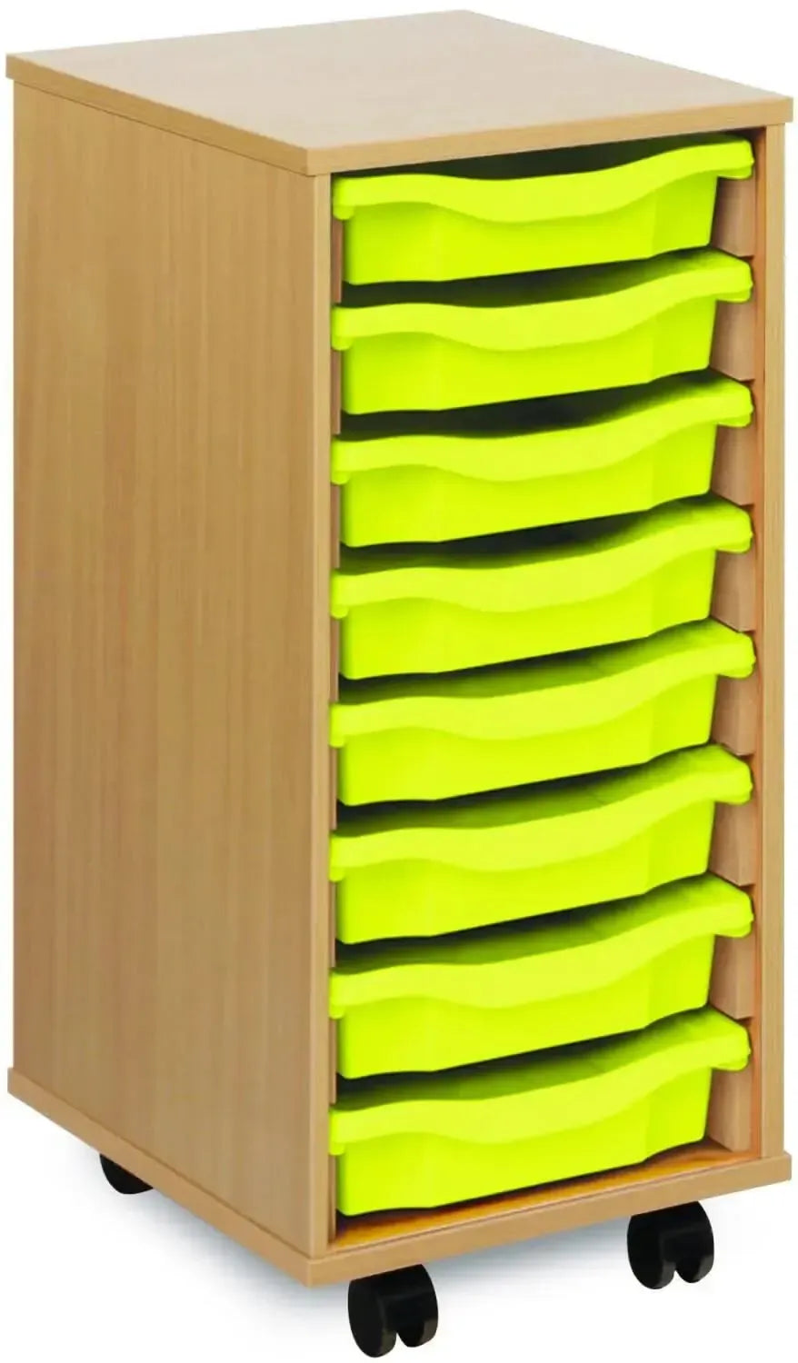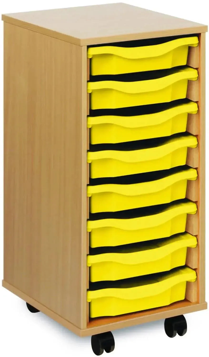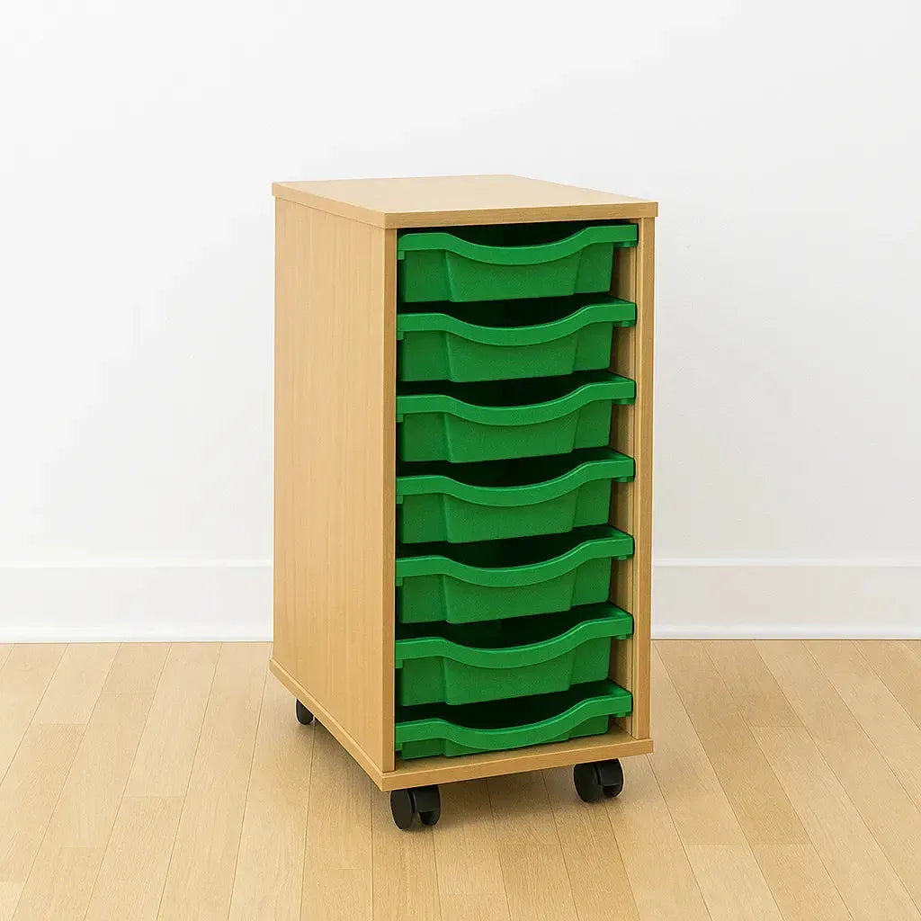 Constructed from strong 18mm MFC, the unit is available with a beech or maple carcass to blend seamlessly into any classroom or office décor. It includes eight shallow trays, which can be customised in a range of colours or a combination of colours to suit your organisational needs. The unit is fitted with castors as standard, allowing for easy mobility and flexibility, making it simple to move and rearrange as required.