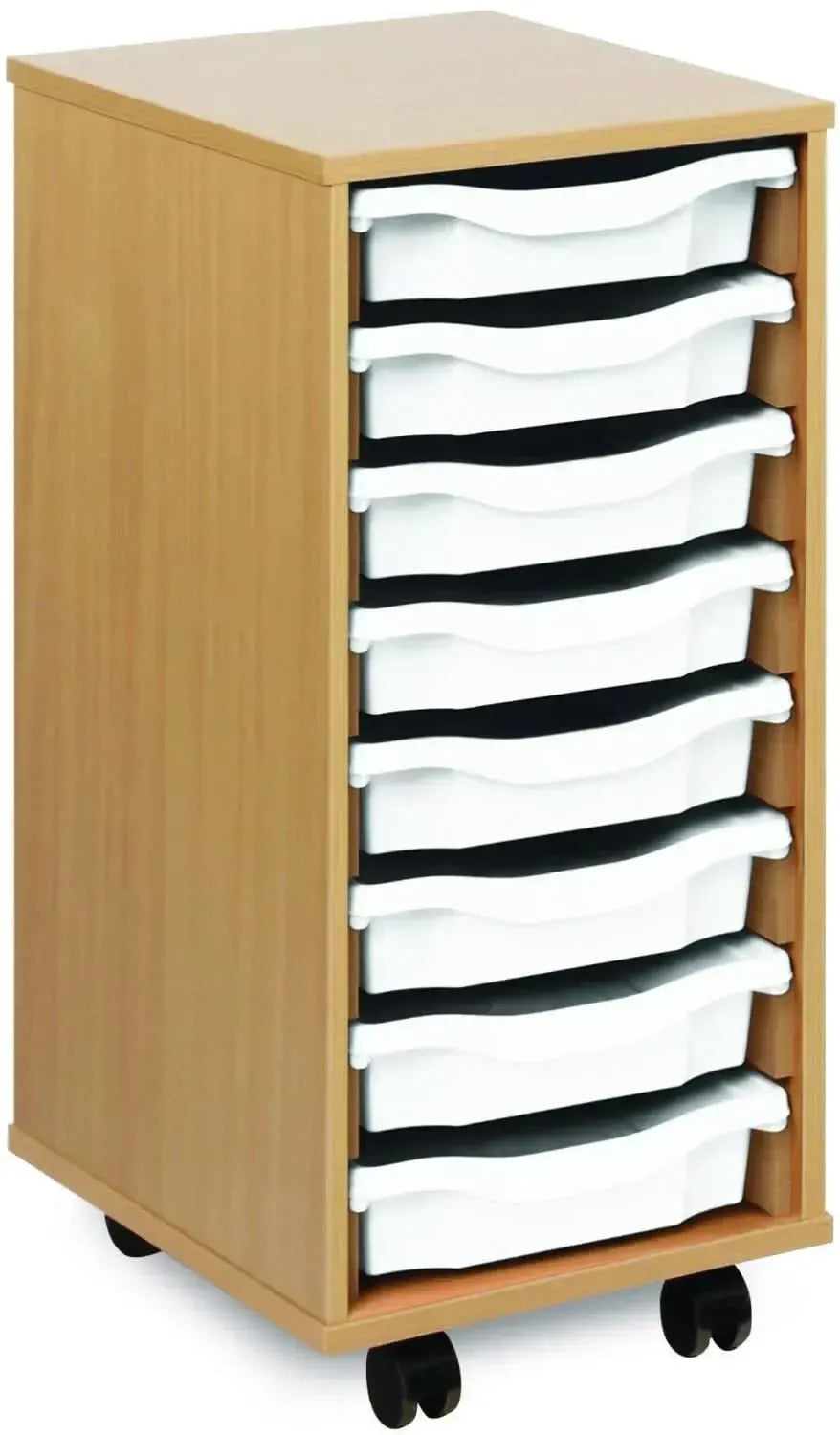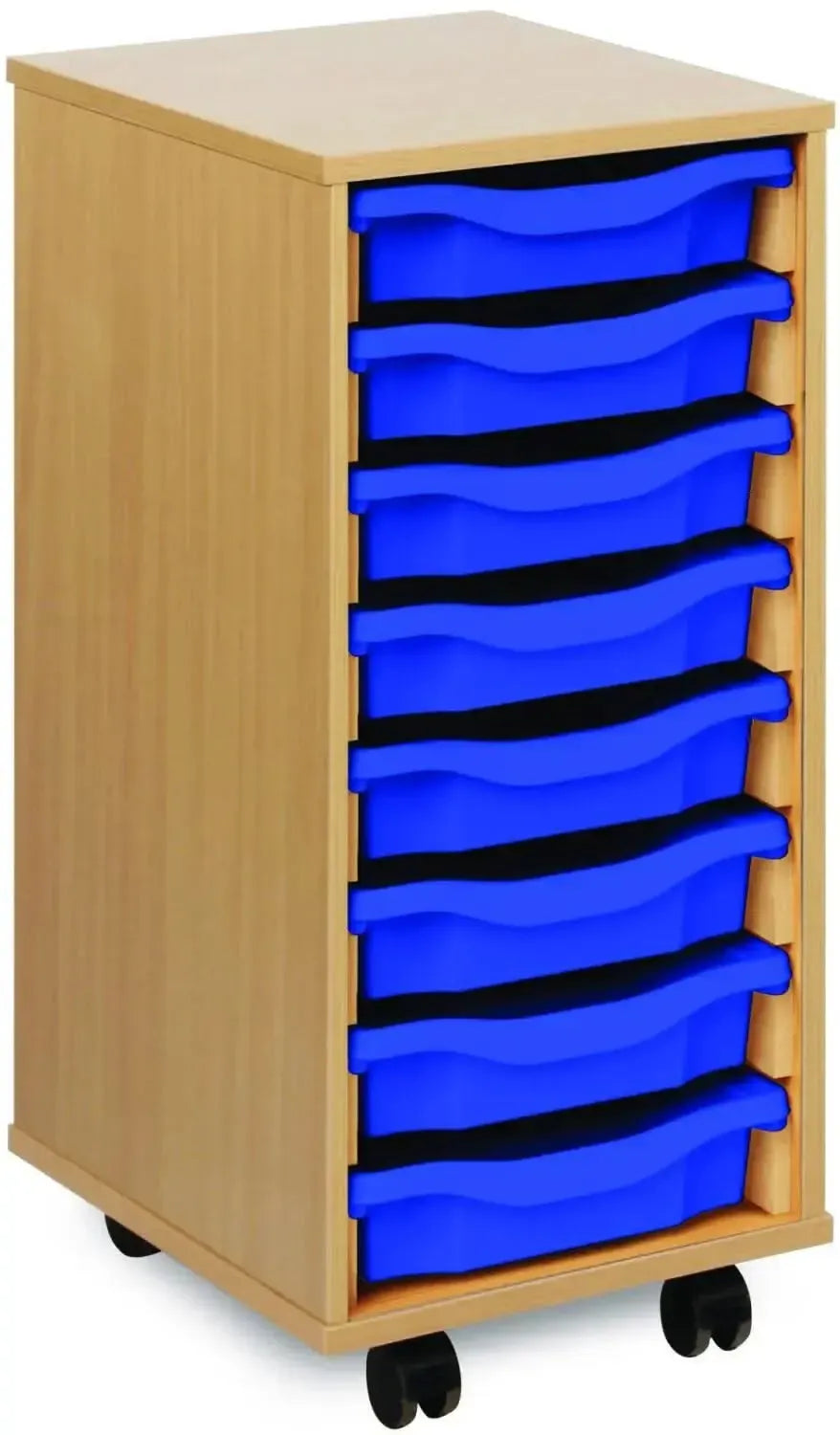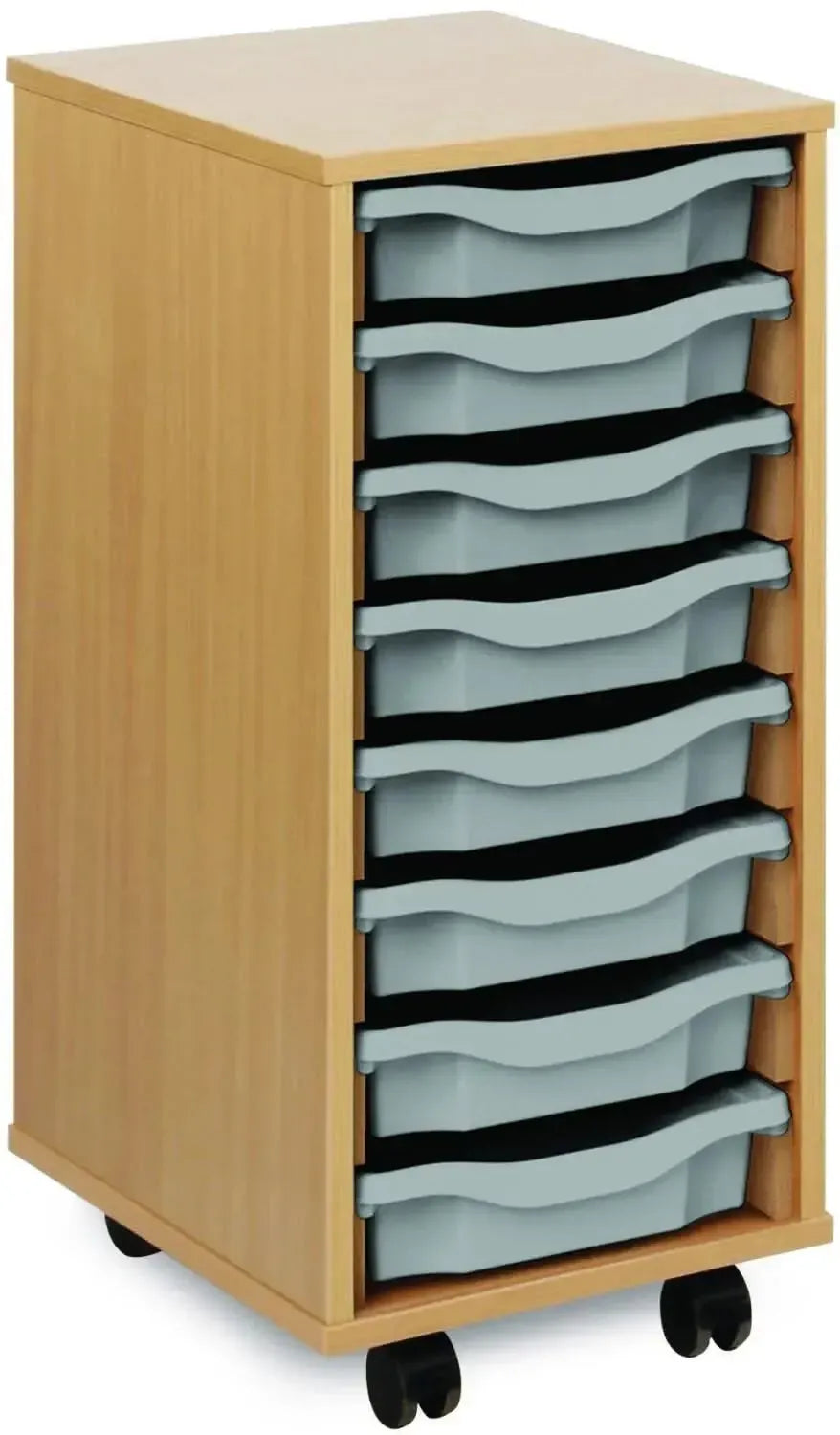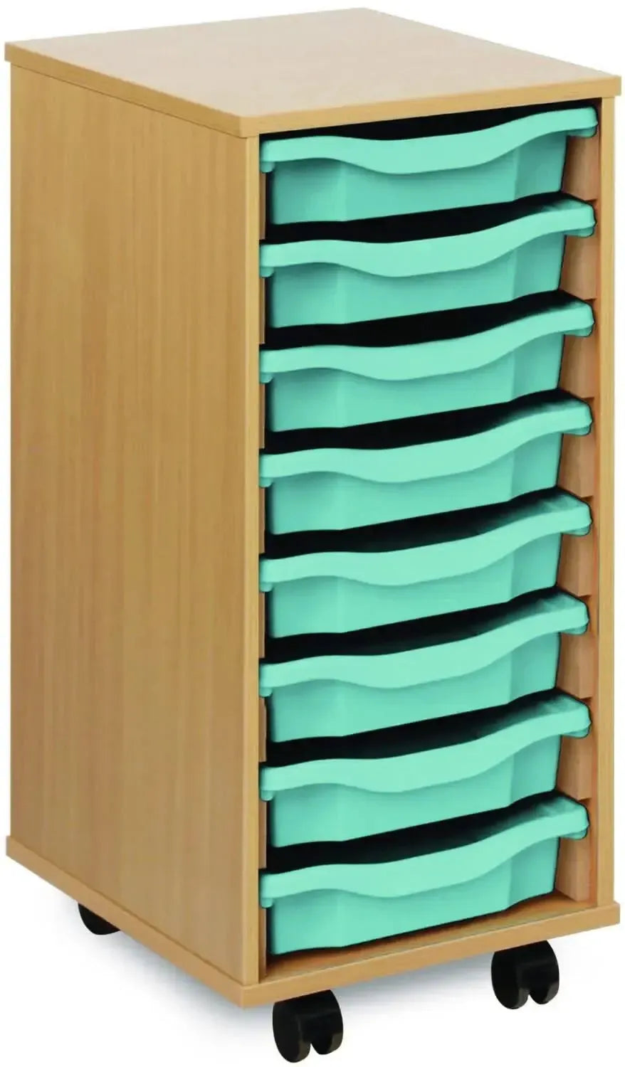 Constructed from strong 18mm MFC, the unit is available with a beech or maple carcass to blend seamlessly into any classroom or office décor. It includes eight shallow trays, which can be customised in a range of colours or a combination of colours to suit your organisational needs. The unit is fitted with castors as standard, allowing for easy mobility and flexibility, making it simple to move and rearrange as required.