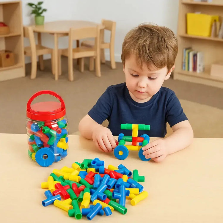 - Vibrant Colour Palette: The pipe pieces, which are available in four bright and appealing colours, encourage vibrant and colourful creations that are as delightful to look at as they are to play with.