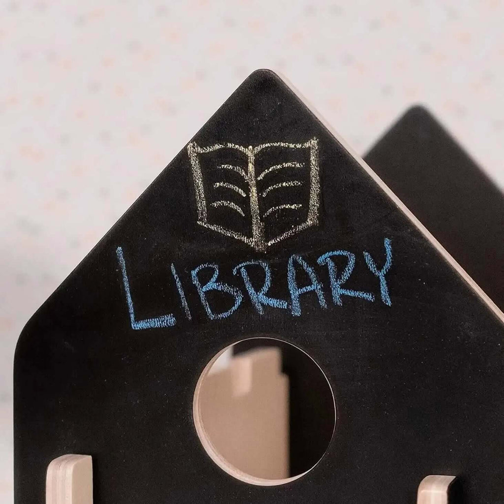 With a blackboard surface on one side to encourage children to use their imagination and explore a whole new world of their own, decorating one side as they choose, or practicing their words by naming buildings with words like library, school and home.