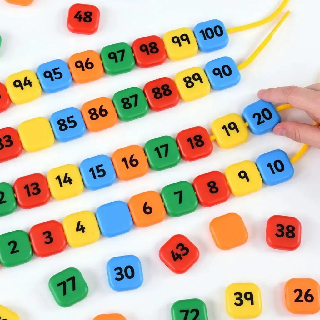 0-100 Lacing Number Beads include 101 numbered beads and 10 sturdy laces