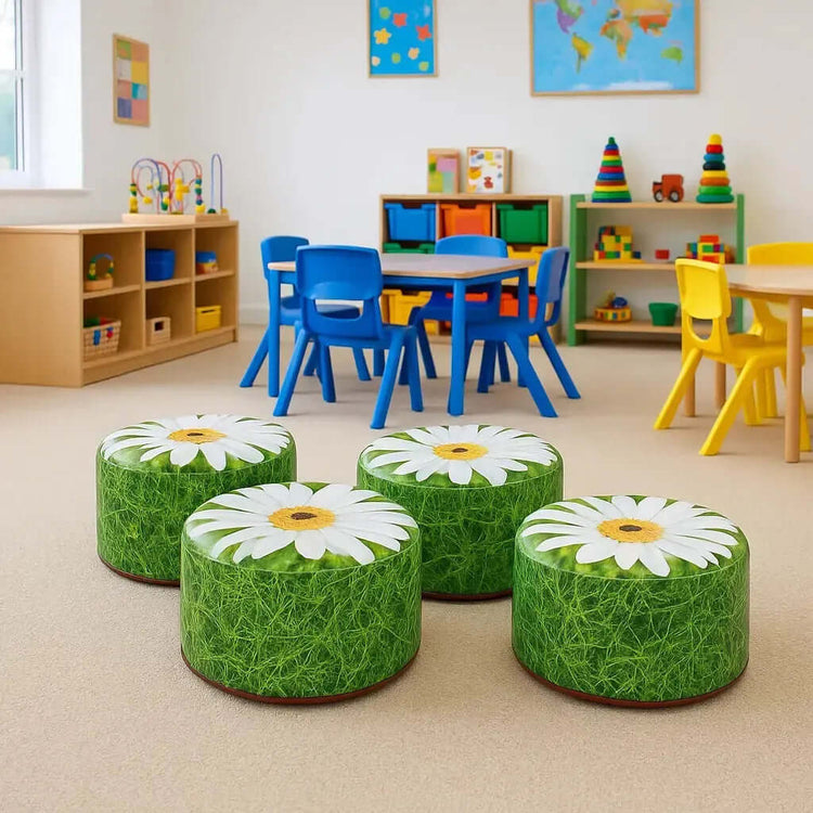 Bring the beauty of the outdoors into your learning environment with the Daisy Beany Buffet Set of 4. These delightful bean-filled pouffes are printed with a cheerful daisy design, creating a calm and inviting atmosphere perfect for reading corners, circle time, and story sessions. Designed with early years in mind, they offer a charming way to introduce nature-inspired themes into the classroom or nursery settings.