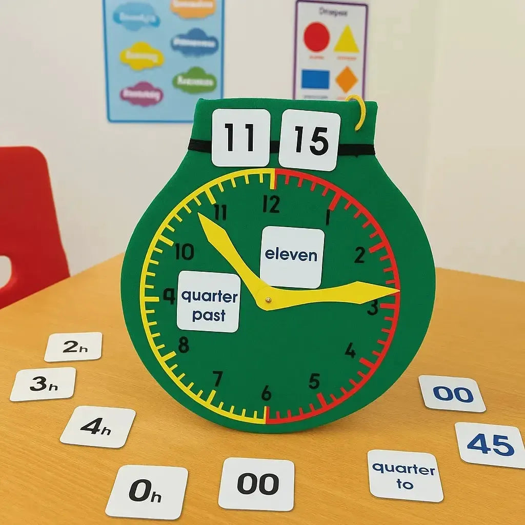 Included in the set are a variety of word and number labels that allow children to build and match times in both digital and analogue formats. This flexibility encourages active learning and independent exploration, making it easier for pupils to measure, record, and apply their knowledge of time in real-world contexts.