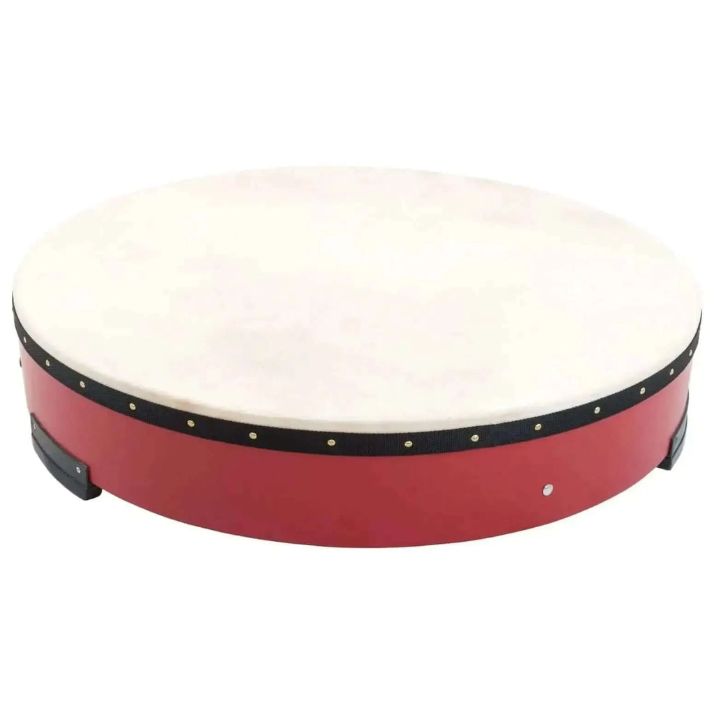 Quality Craftsmanship: The Gathering Drum boasts a stunning red, solid wood shell that not only looks fantastic but also produces rich and resonant tones. Its natural goat skin head is securely held in place with gold- coloured rivets, ensuring both durability and a warm, authentic sound.