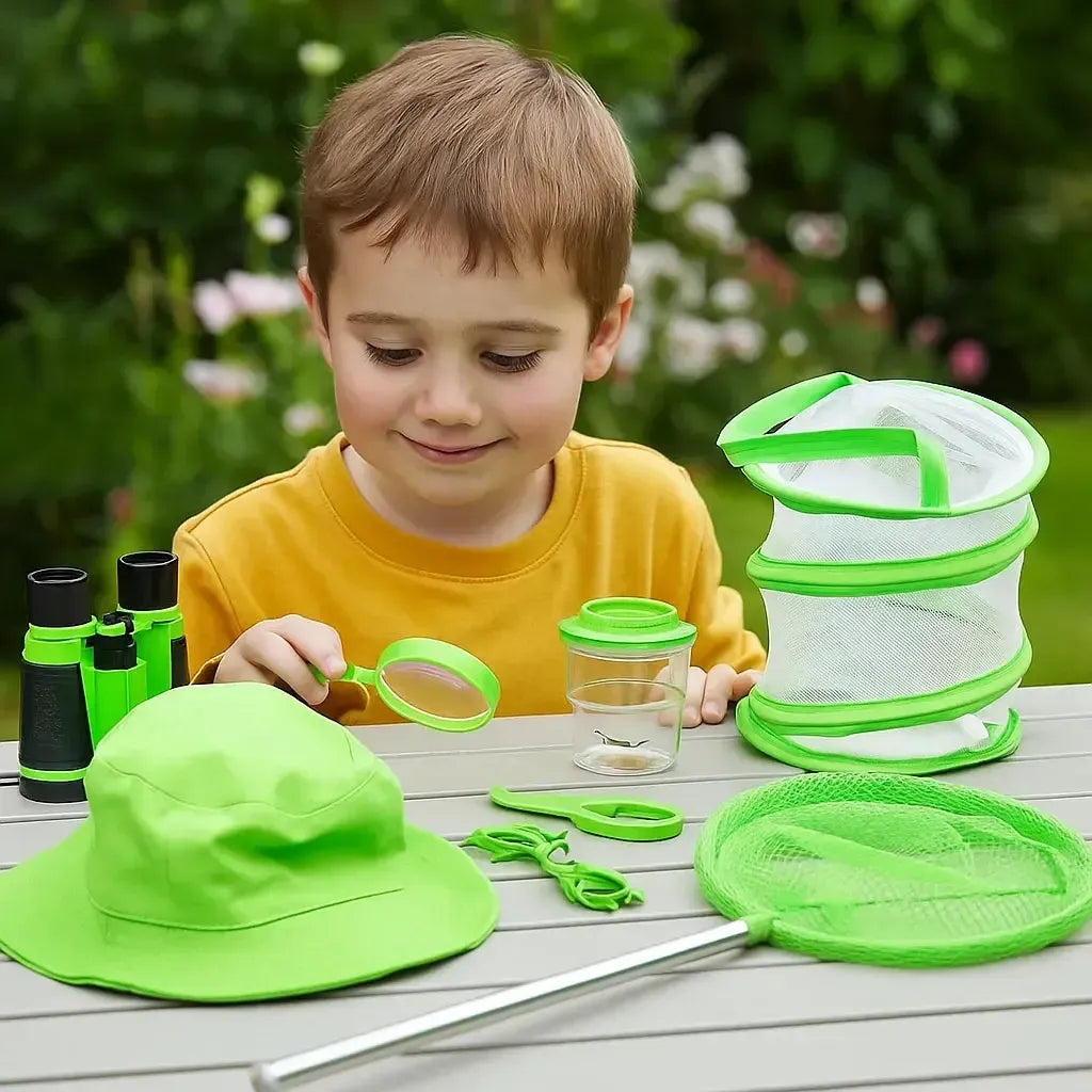 - Complete Exploration Set: Includes a green bucket hat, pop-up bug net, telescopic net, binoculars, magnifying glass, and magnifying jar, offering everything a young explorer needs.