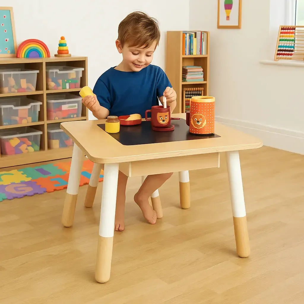 At the heart of the Wooden Forest Table is a removable chalkboard central panel, giving children a dedicated space to draw, doodle, and express themselves. Whether it’s practising numbers, scribbling masterpieces, or inventing stories, the chalkboard surface turns everyday play into creative exploration.