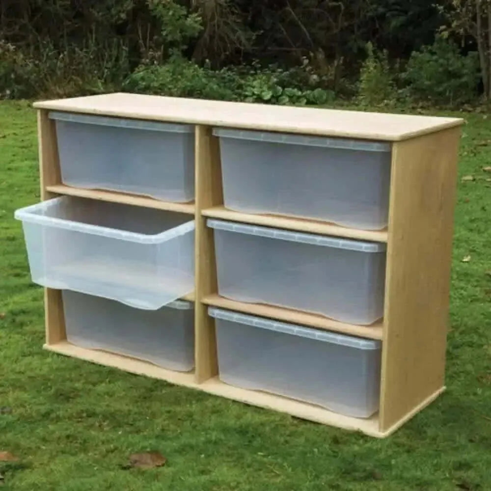 Keep your outdoor learning or play area neat, tidy, and organised with the Leave Me Outdoors Large Storage 6 Tray Unit. Designed for durability and convenience, this high-quality unit features six spacious clear trays—perfect for storing smaller outdoor play items, educational resources, or gardening tools. Whether used in a nursery, school, or outdoor classroom, this storage solution ensures everything has its place, rain or shine.