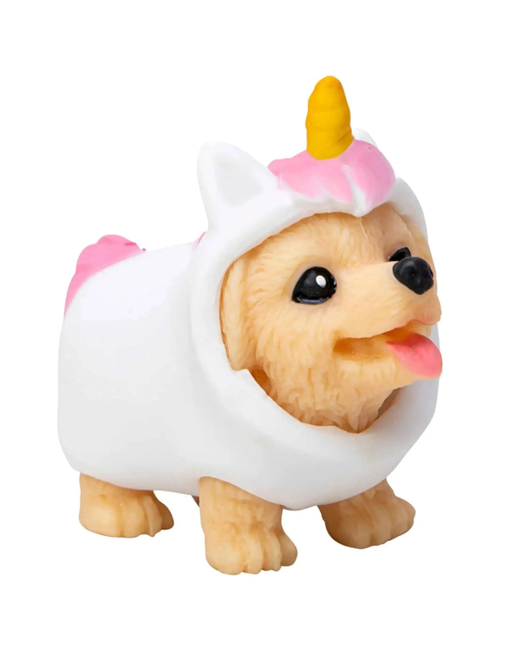 Meet the Party Puppies, the pint-sized pups bursting with personality, ready to bring joy wherever they go! These adorable little dogs are soft, squishy, and irresistibly fun to collect. Each puppy comes dressed in a hilarious, stretchy costume—perfect for swapping, mixing, and matching with other Party Puppies for endless imaginative fun.