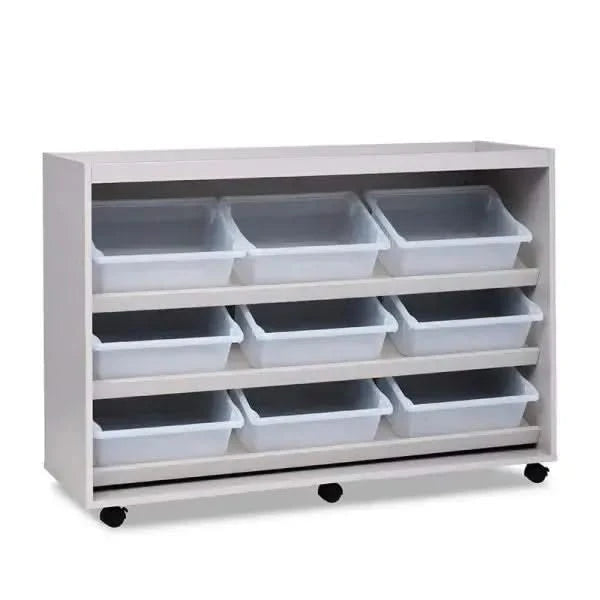 Crafted from 18mm FSC-certified Grey MFC with 2mm ABS edging, this unit is built for durability and longevity. The semi-enclosed sloping design allows for quick and easy access to trays, making it ideal for use in busy classrooms and sensory learning environments. The black plastic handles are designed for enhanced safety, offering an improved grip for visually impaired users and reducing the risk of injury.