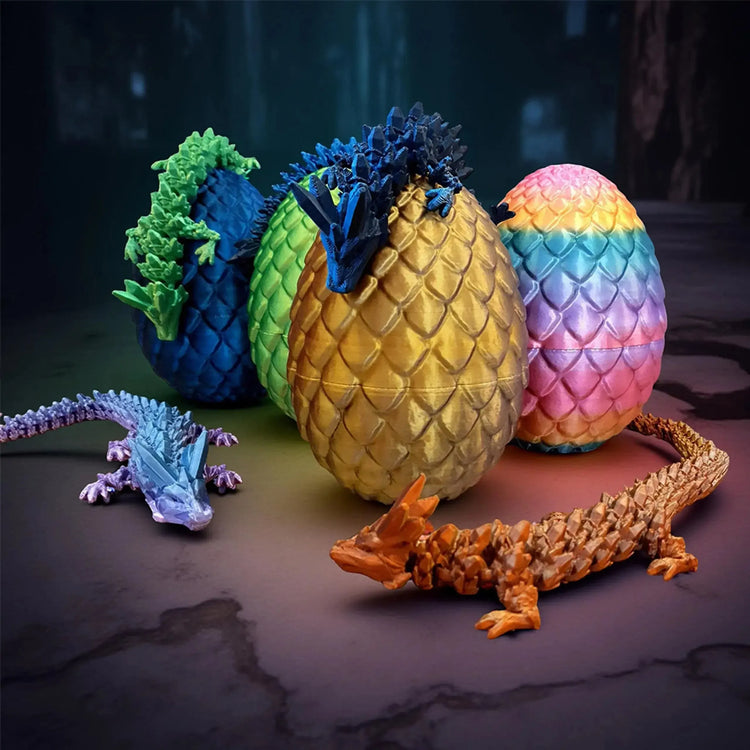 Unleash epic wonder with this Giant 3D Printed Dragon Egg, the oversized version of the viral sensation adored by fantasy lovers everywhere. Crack open the beautifully sculpted egg to reveal a fully articulated dragon measuring an impressive 33cm, intricately printed and ready to stretch, pose, and mesmerise. Available in three breathtaking colour blends—Purple/Blue, Green/Blue, and Orange/Red—this enchanting collectable brings mythical magic to life in your hands.