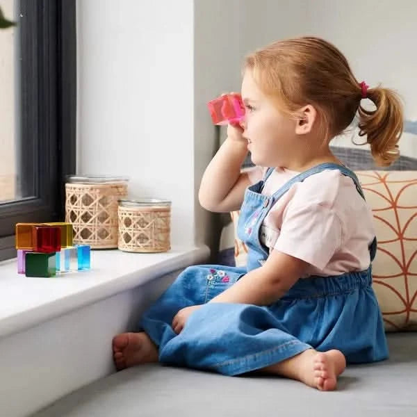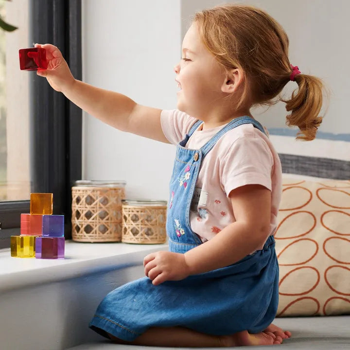 Perfect for homes, nurseries, and early years settings, these solid, easy-to-handle cubes offer endless opportunities for stacking, colour mixing, light play, and imaginative storytelling.