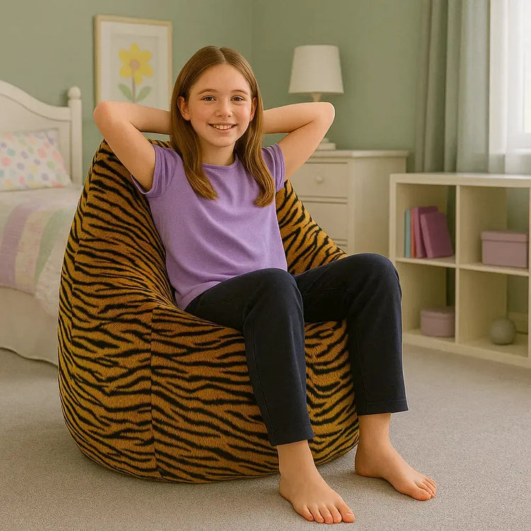 Tiger Print Slouch Bag – Cosy, Wild-Inspired Bean Bag for Kids’ Bedrooms and Playrooms