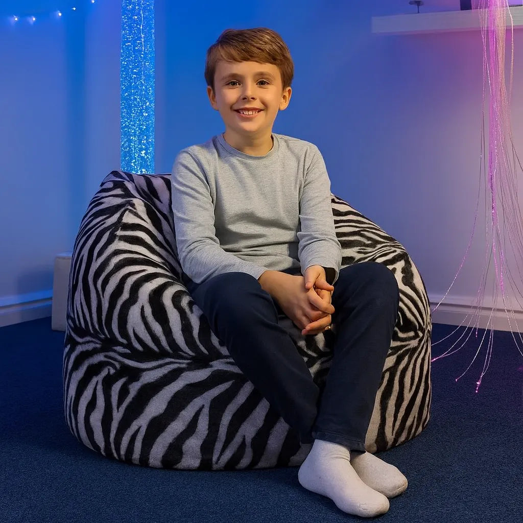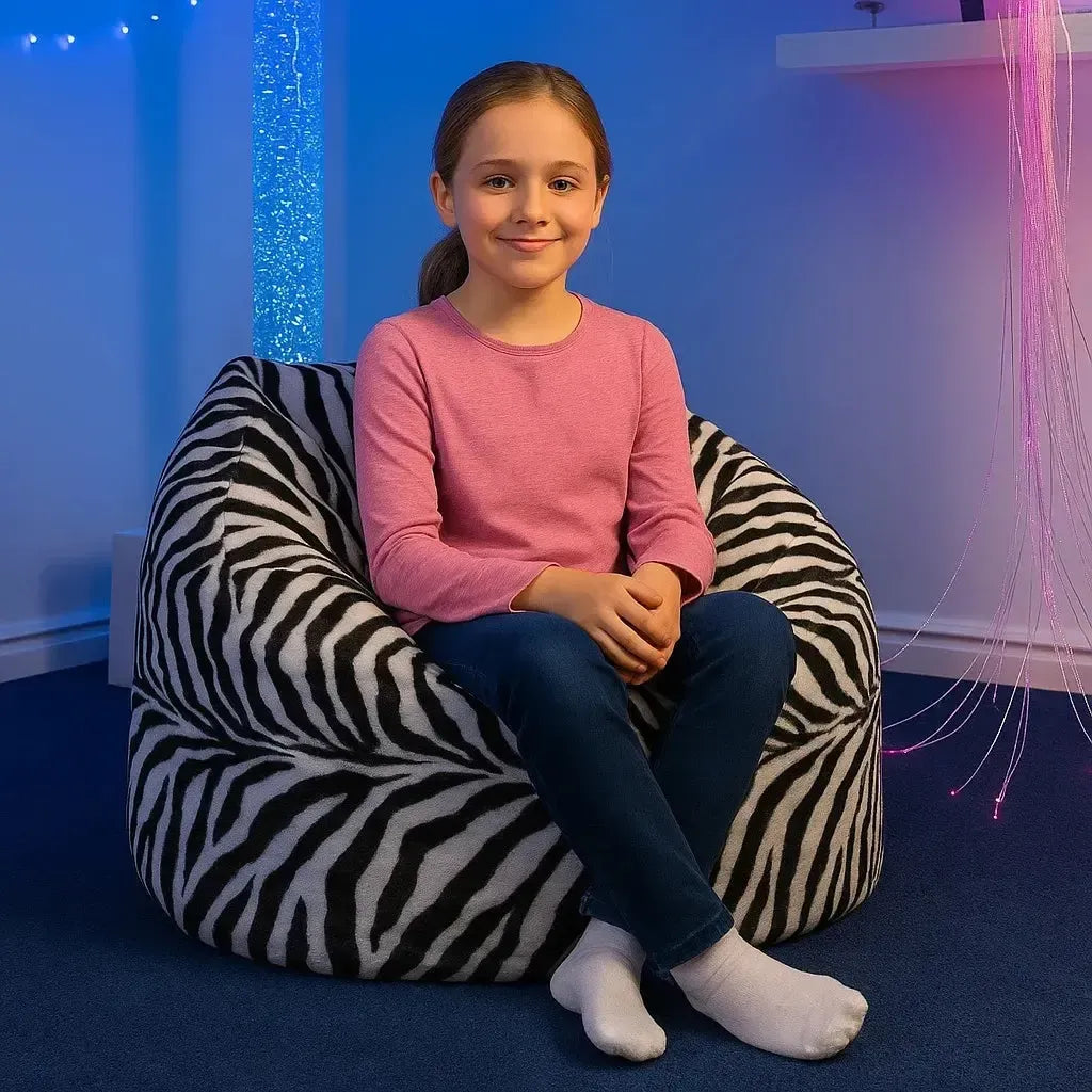 Zebra Print Slouch Bag – Cosy, Wild-Inspired Bean Bag for Kids’ Bedrooms and Playrooms