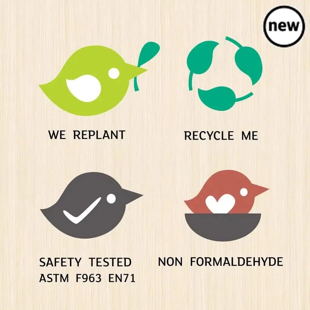 Crafted from sustainable rubberwood and responsibly sourced plywood, the toy is coloured with soft, non-toxic paints, ensuring safety and style. Its contemporary design blends seamlessly with any playroom décor.