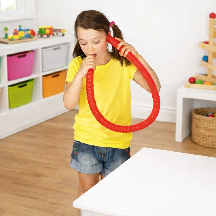 Beyond its entertainment value, the Twirling Sound Pipe offers meaningful developmental benefits. Twirling, swinging, and controlling the pipe strengthen finger, hand, and arm muscles while improving coordination and control. These movements support both fine and gross motor skill development, making the toy a valuable addition to active and sensory play routines.