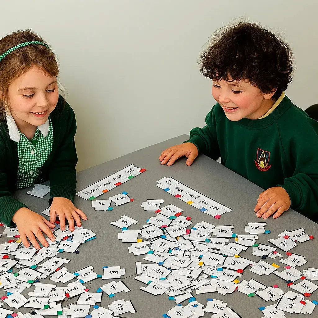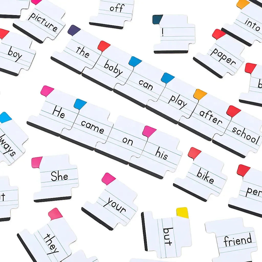 - 250 Puzzle Pieces: Durable, colour-coded pieces for interactive sentence building.