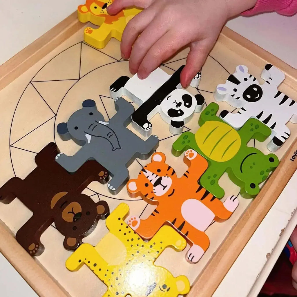 Construct an exciting animal tower or stack the animals together to create engaging shapes. Includes a bear, lion, frog, monkey, leopard, crocodile, elephant, tiger, hippo, polar bear, panda and a zebra. Encourages creativity, fine motor skills and imagination.