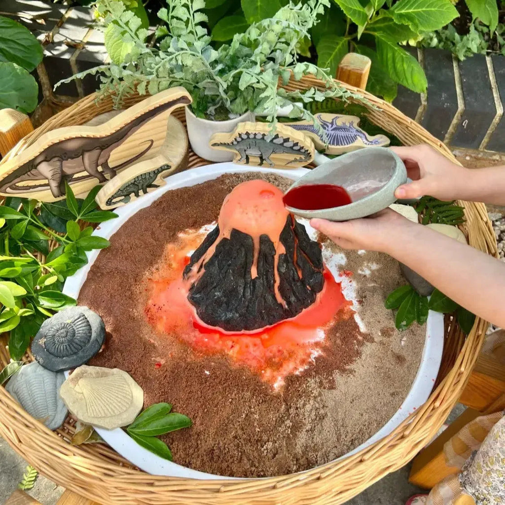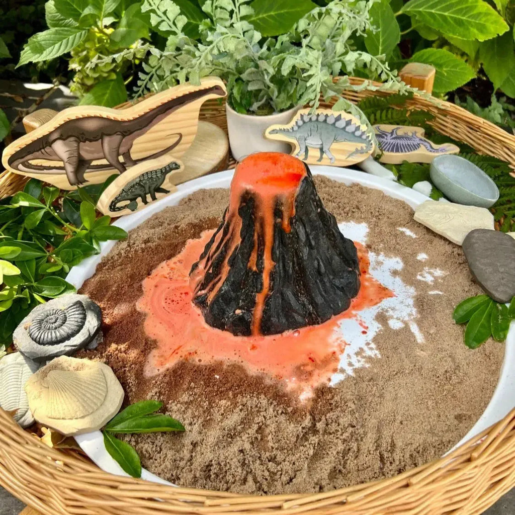 Children can experiment with their own dramatic eruptions, watching as fizzing “lava” bubbles over the crater. Each eruption becomes a fun, hands-on science activity that introduces concepts of cause and effect while encouraging the use of scientific language. From describing eruptions to role-playing explorers, children are building both their creative and cognitive skills through play.