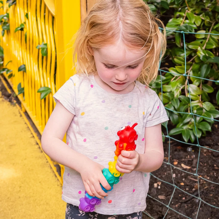 Lightweight and portable, the Push Popper Suction Caterpillar is easy to take anywhere. It fits comfortably into bags or desks, making it a convenient sensory tool for use at home, school, or on the go.