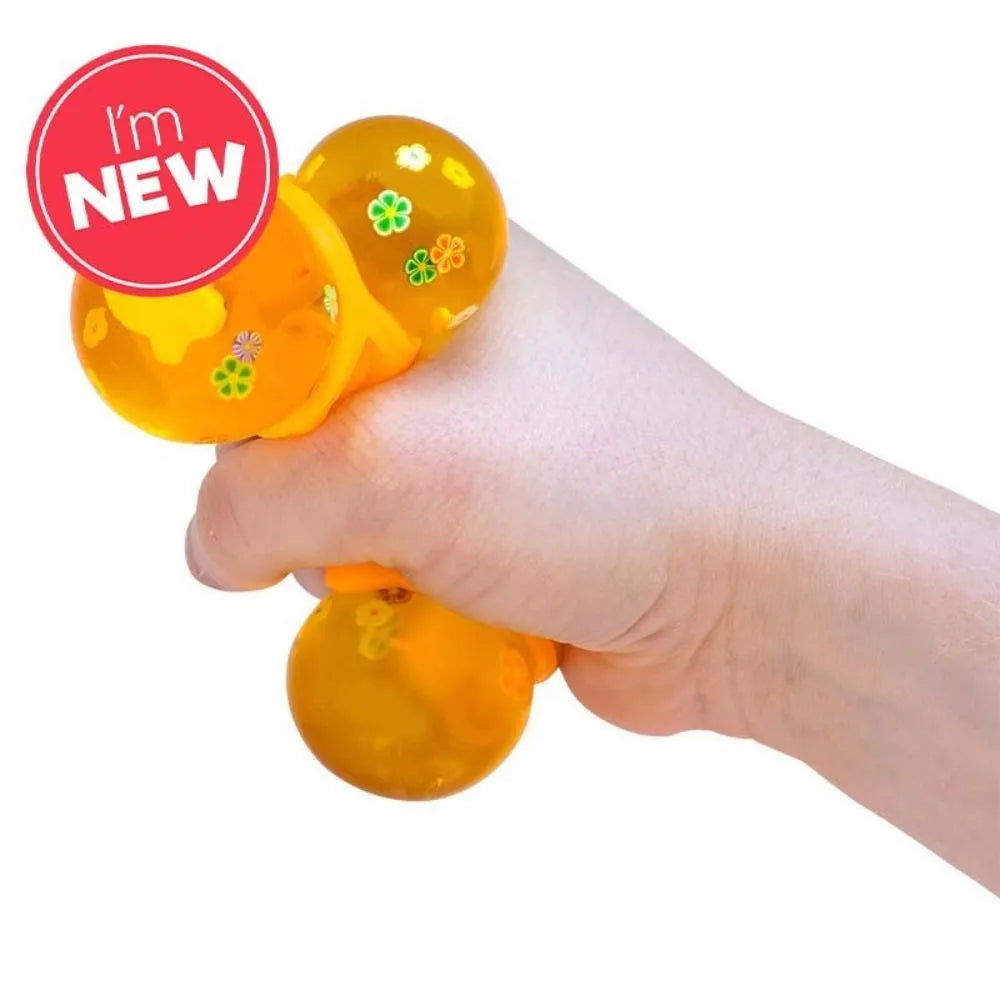 Bring a little buzz to your day with the Scrunchems Honeybee Fusion Squishball, a sensory toy that’s as cute as it is satisfying. Designed with a vibrant yellow honeycomb shell, this squishy ball features an adorable little bee and floating flowers inside, creating a truly eye-catching fidget toy. Each squeeze pushes the gel through the honeycomb holes, giving a mesmerising effect that feels as good as it looks. Perfect for children and adults, this playful stress ball makes a sweet companion for school, work, or relaxation at home.