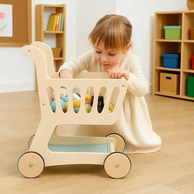 - Stylish and durable wooden shopping cart – perfect for imaginative role-play