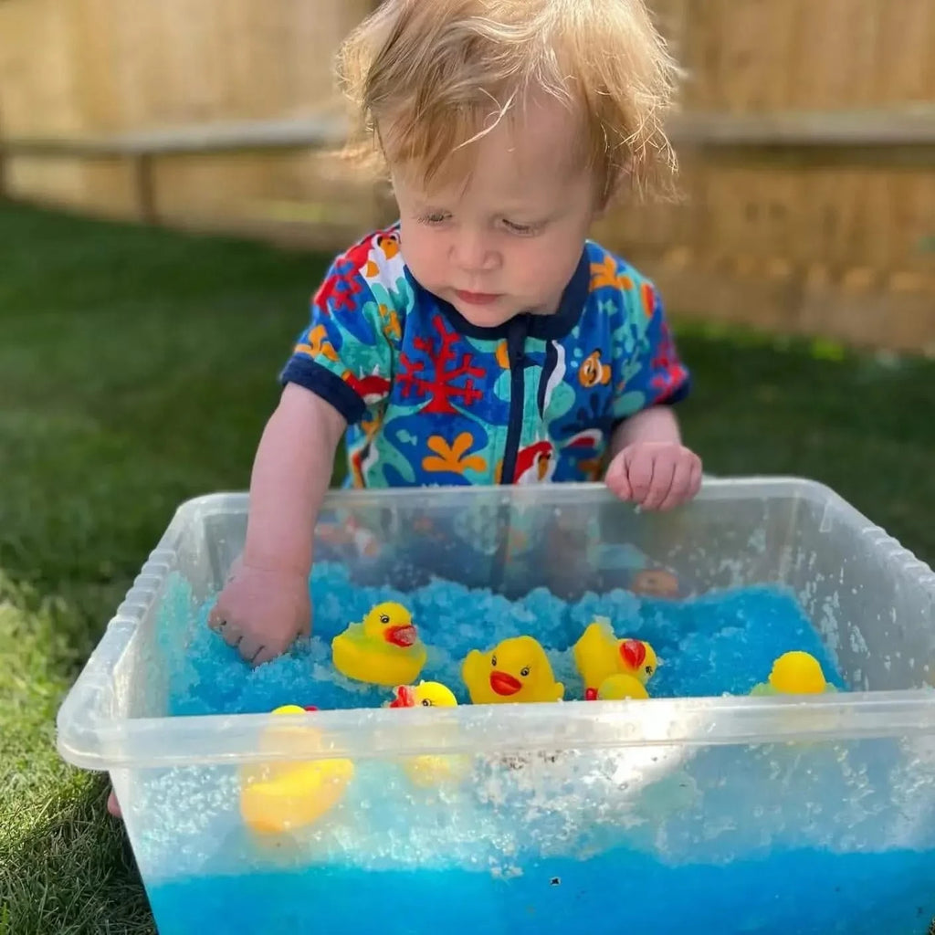 Designed with parents in mind, Gelli Play is completely skin-safe, stain-free, and environmentally friendly. The gentle formula won’t irritate skin and leaves no stubborn marks on surfaces or clothing. Cleanup is quick and easy—sprinkle the dissolving powder over the goo and watch it disappear back into water, ready to pour away safely. It’s a stress-free way to enjoy big sensory play without a big mess.