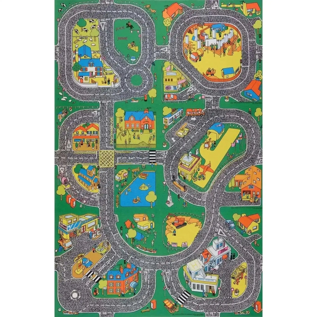 Crafted with durable materials and featuring a non-slip rubber backing, the mat provides a safe and comfortable surface for children to explore. Ideal for group activities, it helps develop communication skills, fine motor coordination, and understanding of how towns function.