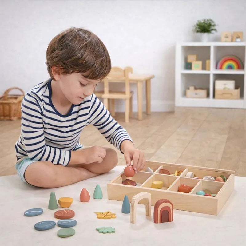 The Tender Leaf My Forest Floor is a beautifully designed open-ended tinker tray that invites children to explore, imagine and create their own woodland scenes. Thoughtfully crafted to encourage calm, creative play, this versatile wooden set allows little ones to sort, stack and arrange natural treasures inspired by the forest floor. Every play session becomes a discovery, shaped by imagination and curiosity.