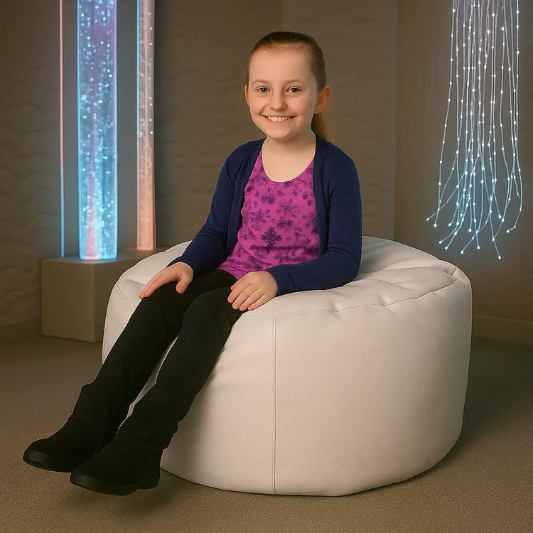 Its minimalist white finish ensures it fits seamlessly into any interior, offering understated elegance while allowing UV lighting effects to take centre stage. Whether you're creating a calming retreat, designing an interactive sensory zone, or introducing new visual stimuli to support learning, the White UV-Reflective Beanbag delivers a versatile, durable, and emotionally supportive solution that enhances every sensory experience.