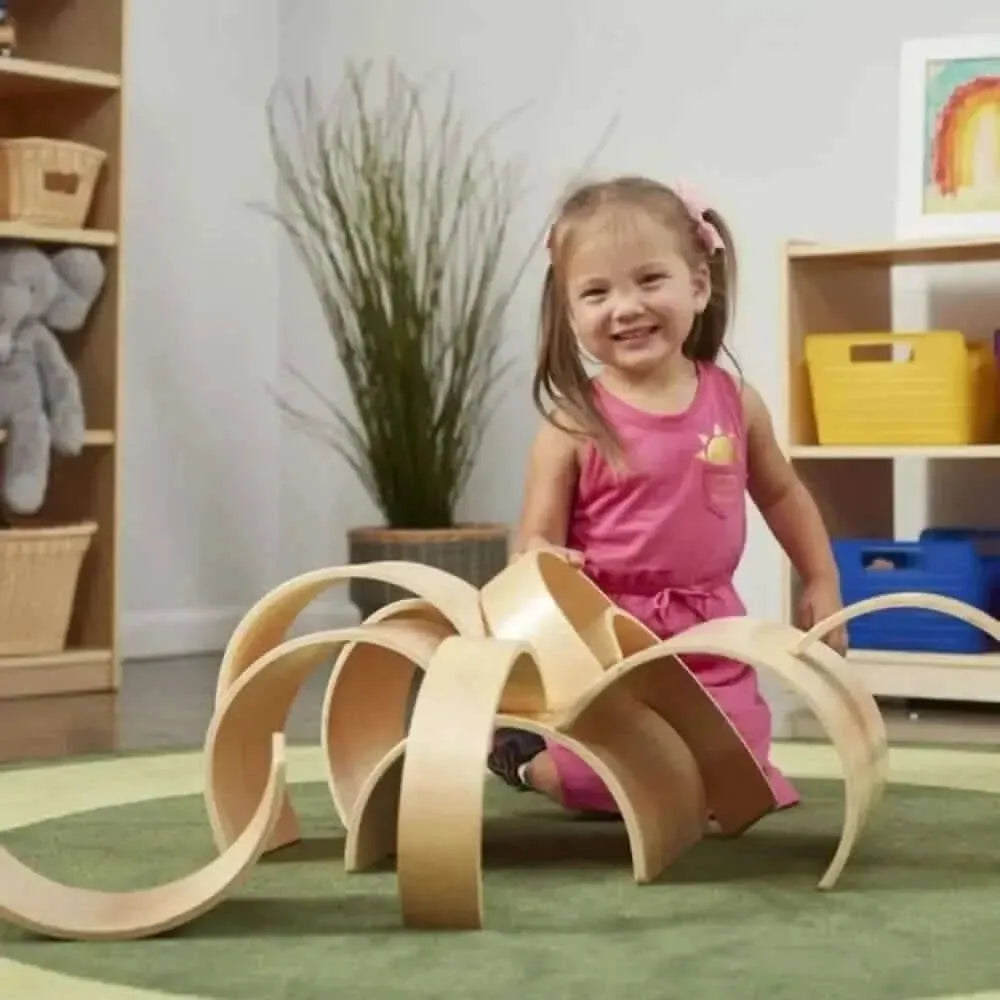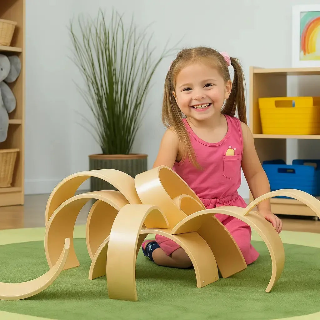 The Arches and Tunnels set provides a creative and versatile supplement to traditional block play. With an open-ended design, this set invites children to explore their imagination, enhancing their learning and development in multiple areas.