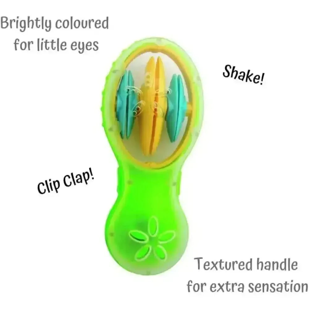 - 1 x Clip Clap Shaker – A unique shaker with clip claps that creates a rhythmic sound when shaken.