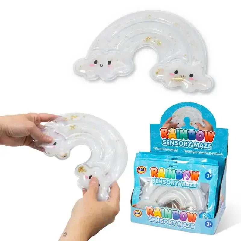 Embark on a colourful journey with the Sensory Rainbow Maze Game, a captivating sensory experience with a magical rainbow theme. This tactile maze invites you to use your hands to navigate through its vibrant pathways, offering a soothing and engaging adventure as you squeeze and squish your way to the finish.
