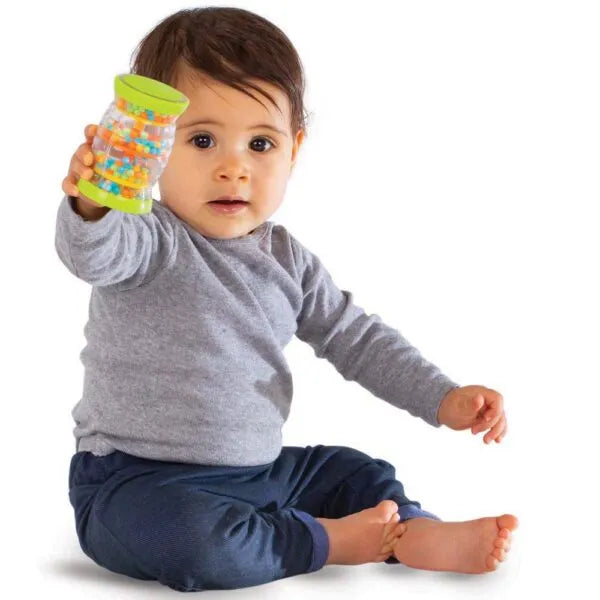 The Baby Shaker features easy-to-hold handles, allowing little ones to shake and create their cheerful jingles. The Rolling Shapes rattle adds extra sensory stimulation with textured surfaces and bright colours to explore. The highlight of the set, the Rainboshaker, mesmerises with its cascading beads and soothing rain-like sound, captivating attention and inspiring calm. Together, these instruments provide a rich variety of sounds, textures, and visual effects to keep children engaged and entertained.