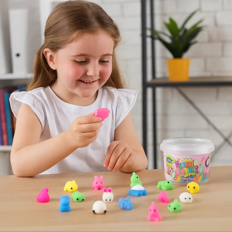 Get ready for endless squishy fun with the Squish Meez Mega Tub! Bursting with 18 adorable squishy characters, this mega tub is perfect for sensory play, stress relief, and imaginative fun. Whether you're squeezing, stretching, or squashing, these super soft creatures are designed to bring joy to kids and adults alike.