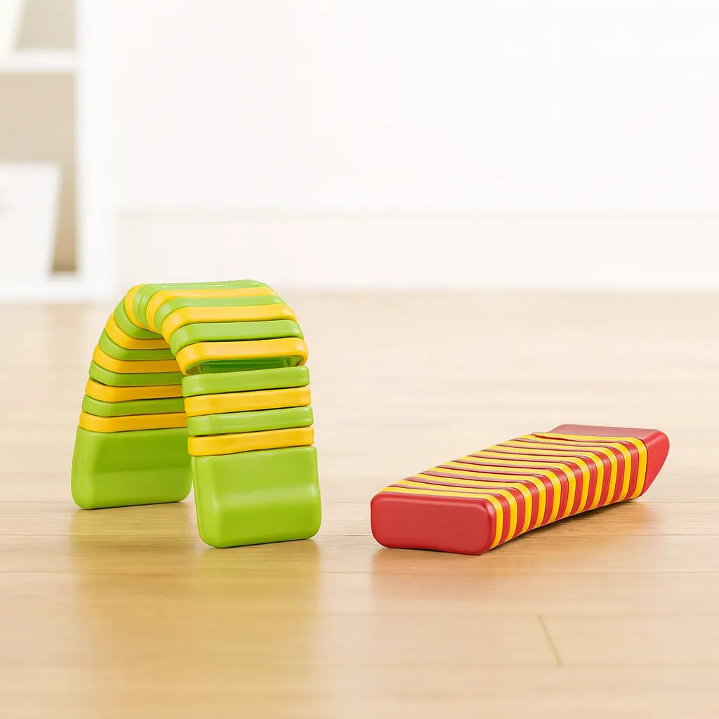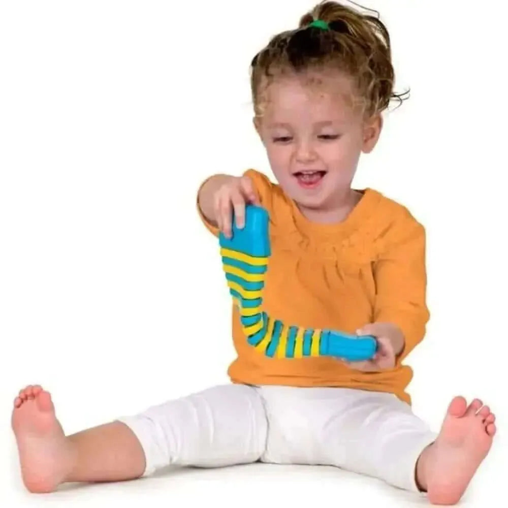By simply moving each hand up and down, the segments of the Clatterpillar clap together, producing a fantastic clickety-clack sound. Children can experiment with different speeds, creating anything from gentle ripples to a clattering crescendo, turning their movements into rhythm.