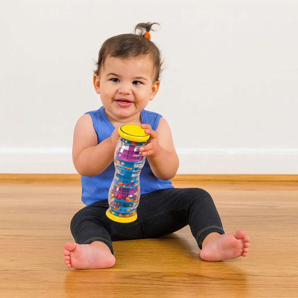 The rainmaker's wobbly base adds an extra element of excitement, making playtime even more unpredictable and fun! Babies will enjoy watching the beads dance and move while experimenting with different sound creation methods.