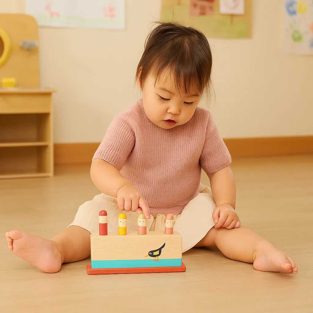 Made from sustainable rubber wood and finished with water-based stains, the Early Bird Pop Up is safe, durable, and eco-friendly. Its smooth surfaces and rounded edges make it perfect for little hands. At the same time, its timeless wooden design ensures it will be enjoyed for years to come—an ideal choice for introducing children to playful learning, sustainability, and interactive fun.