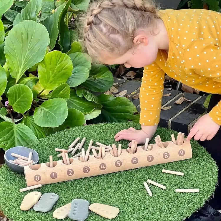The Natural Counting Log is an engaging and tactile resource that supports young learners in developing key numeracy skills. Designed to make counting and number recognition interactive and fun, this beautifully crafted log helps children understand cardinality, number order, and the value of zero through hands-on play.