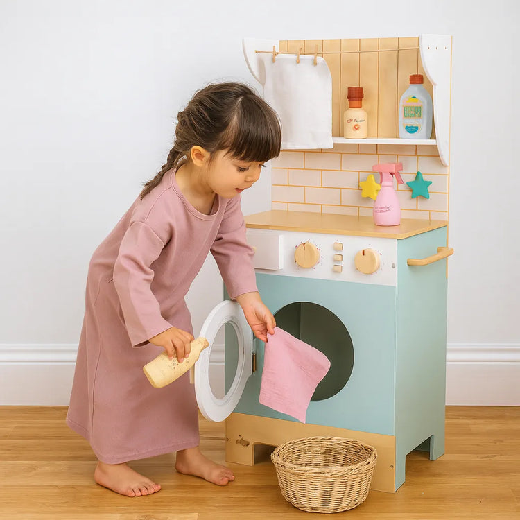 Crafted from eco-friendly, child-safe materials, the Tender Leaf Laundrette is built to last and designed with imaginative play in mind. More than just a toy, it encourages cooperation, storytelling, and role play, while developing fine motor skills and hand–eye coordination—a delightful way to help children learn about household routines while having endless fun.