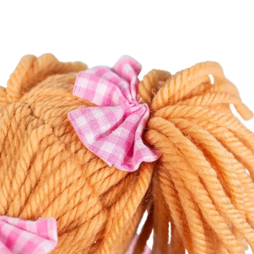 Introducing Ava, the ragdoll designed to steal hearts and spark imaginations. Ava isn't just a toy; she's a companion, a comfort, and a catalyst for endless imaginative play. Dressed in a beautiful pink checked pinny outfit adorned with a charming butterfly and flower print at the bottom, Ava's sweet smile is irresistible. She's lovingly crafted to be the perfect cuddly friend for your little one from birth onwards.